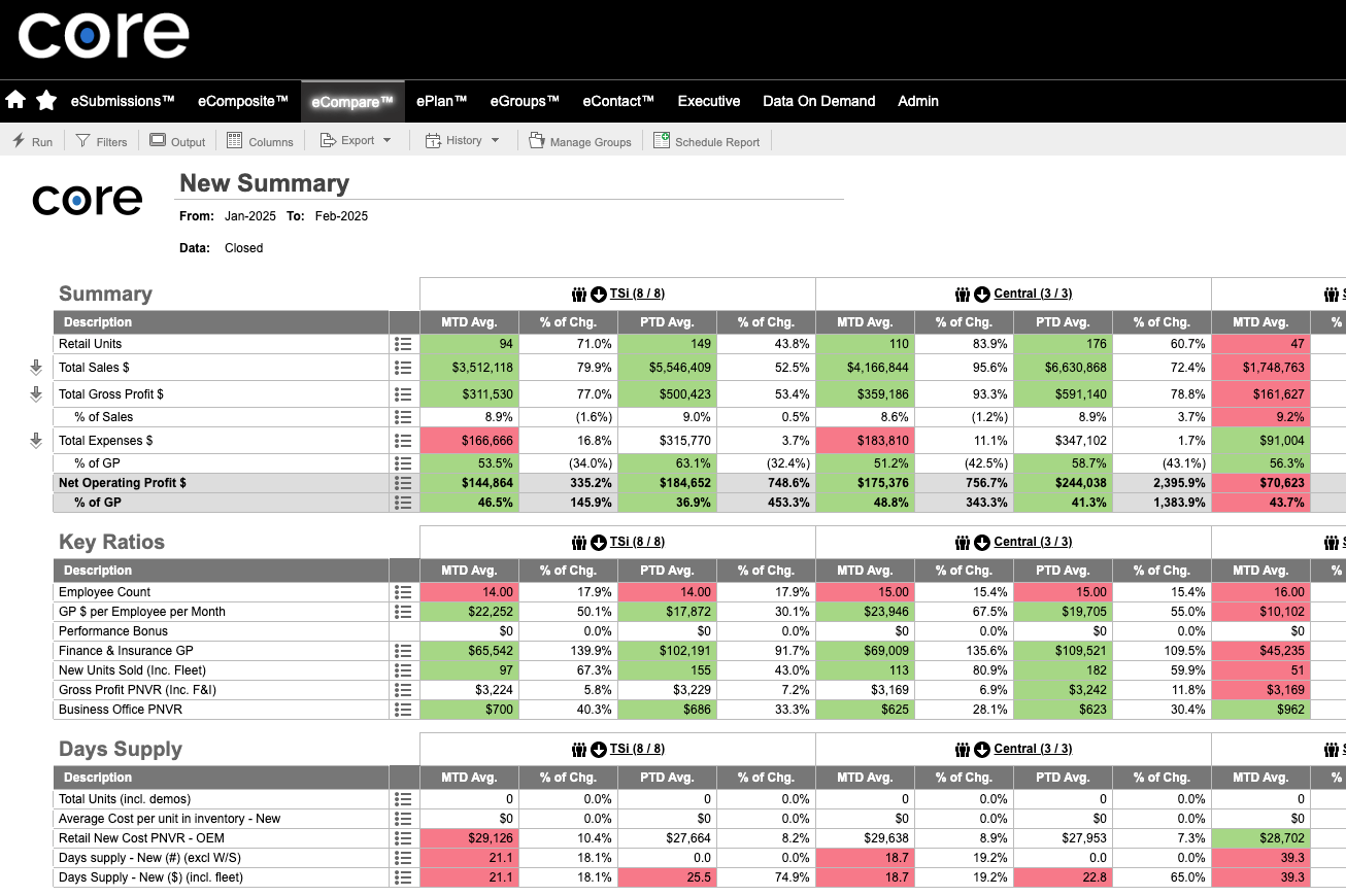 This platform has changed the way we look at dealership performance. The custom dashboards have boosted engagement with our dealers and they love the scenario planning tool. I can’t imagine navigating the current industry landscape without CORE.