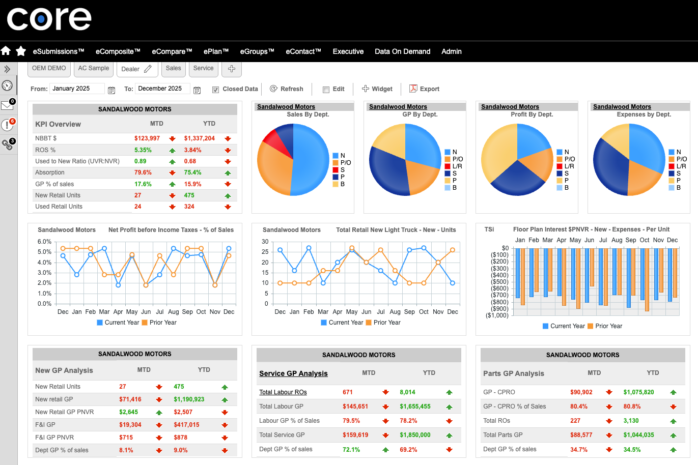 Providing OEMs and dealers with a clear view of performance and opportunity against benchmark industry KPIs. CORE enables consistent performance monitoring across networks, delivering clear insights that support better decision-making and stronger dealer outcomes.