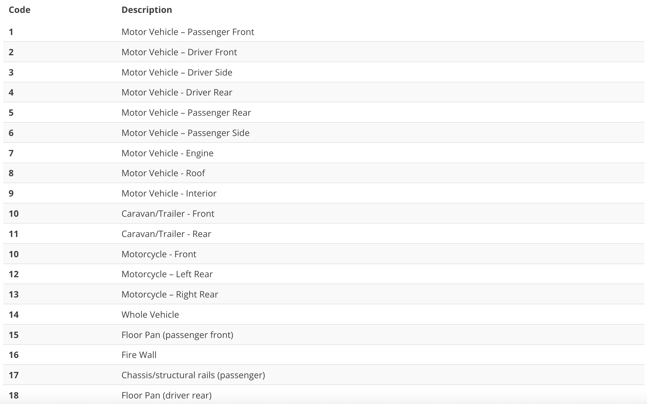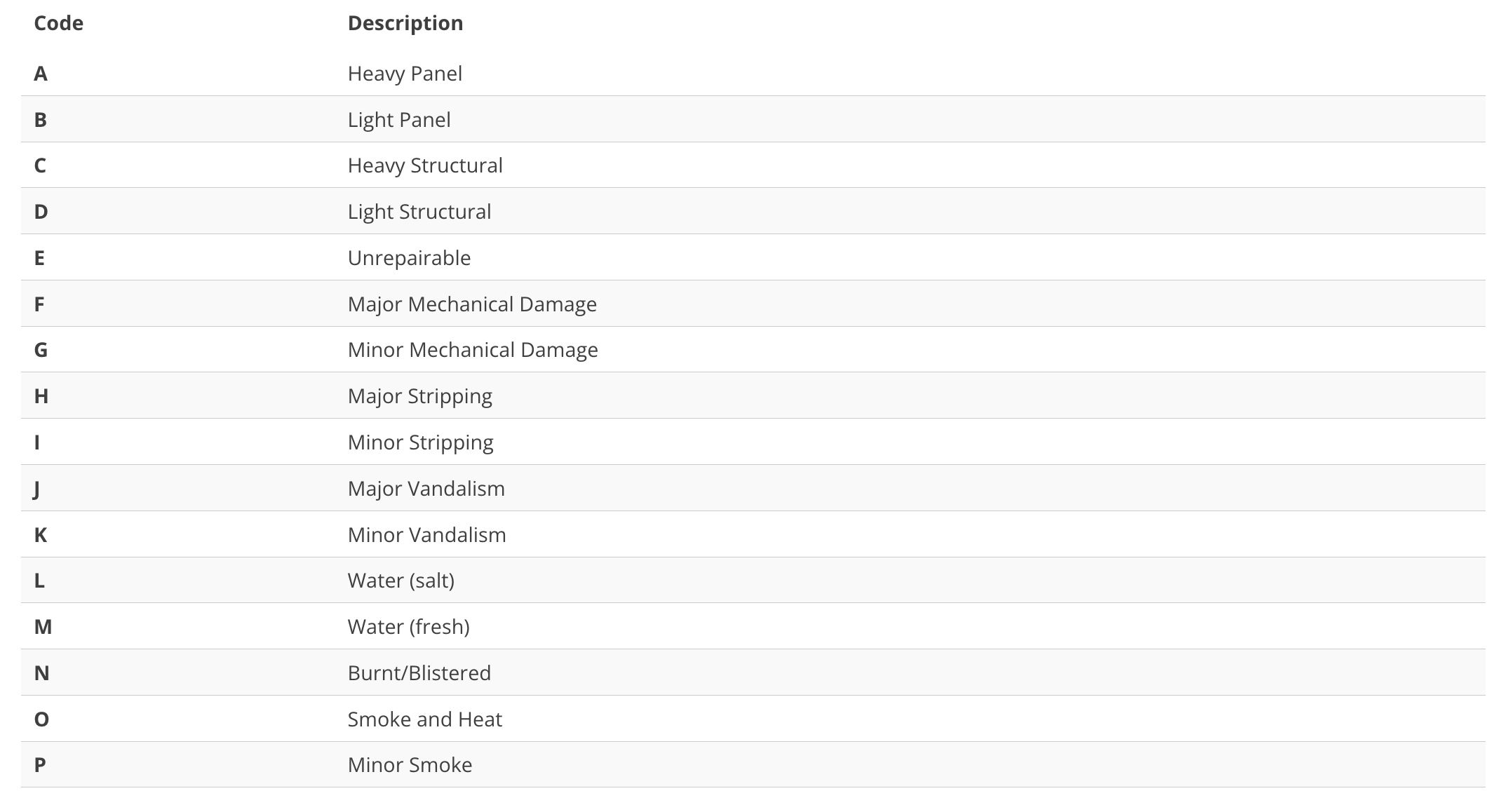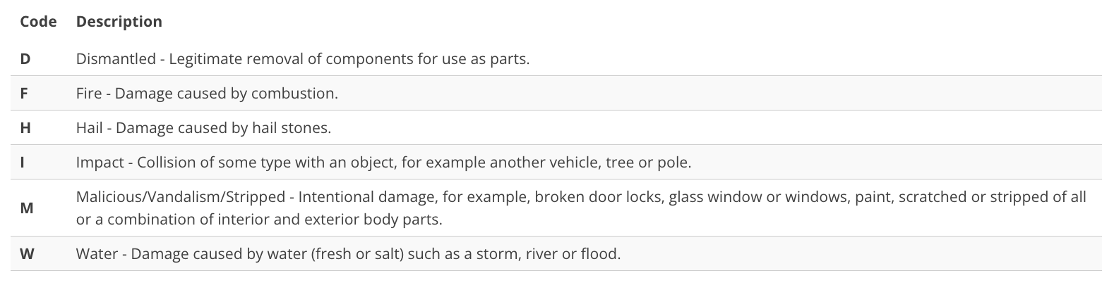 Written Off Vehicle Register (WOVR) Codes